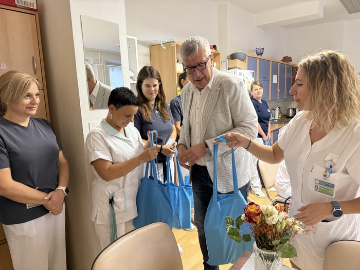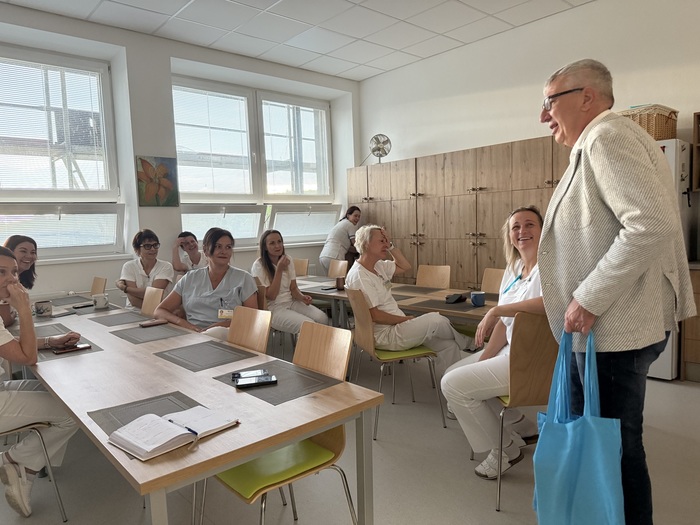 V pátek 12. září se v Rehabilitačním ústavu Hrabyně odehrála milá událost. Pan ředitel se osobně zastavil za zaměstnanci, aby jim poděkoval za jejich každodenní usilovnou práci i za aktivní zapojení do oslav 50. výročí našeho ústavu.